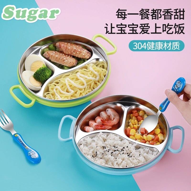 304不锈钢儿童分格餐盘幼儿园卡通防摔儿童碗筷宝宝双耳餐具