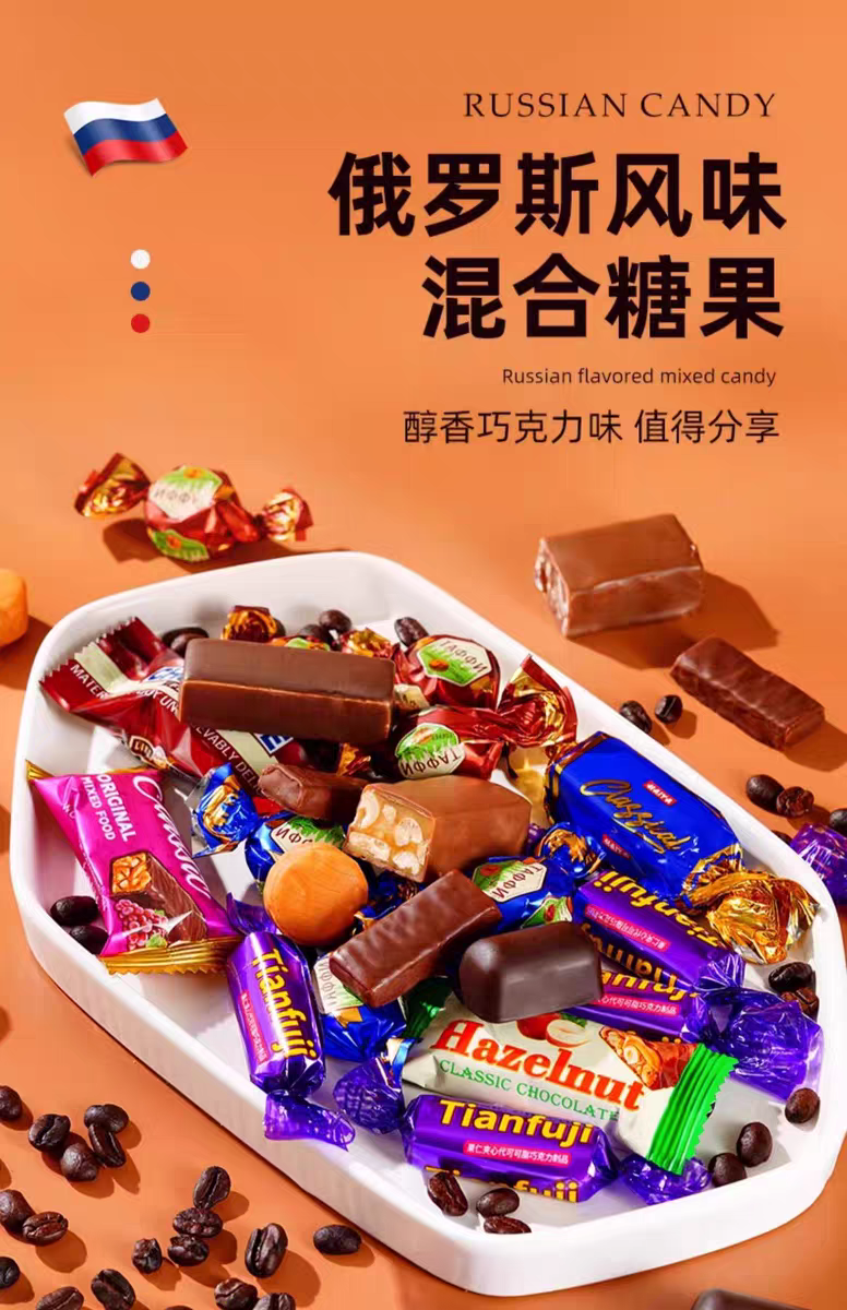俄罗斯进口糖果官方旗舰店巧克力混合糖果高端年货散装喜糖牛轧糖