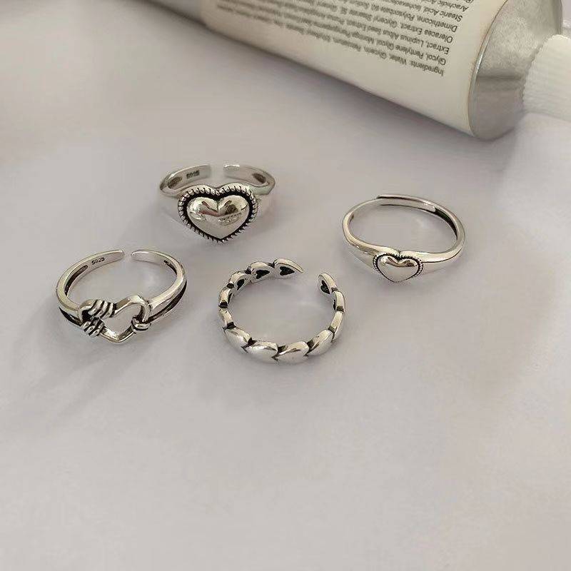 爱心戒指小众设计复古冷淡风开口可调节组合套装给