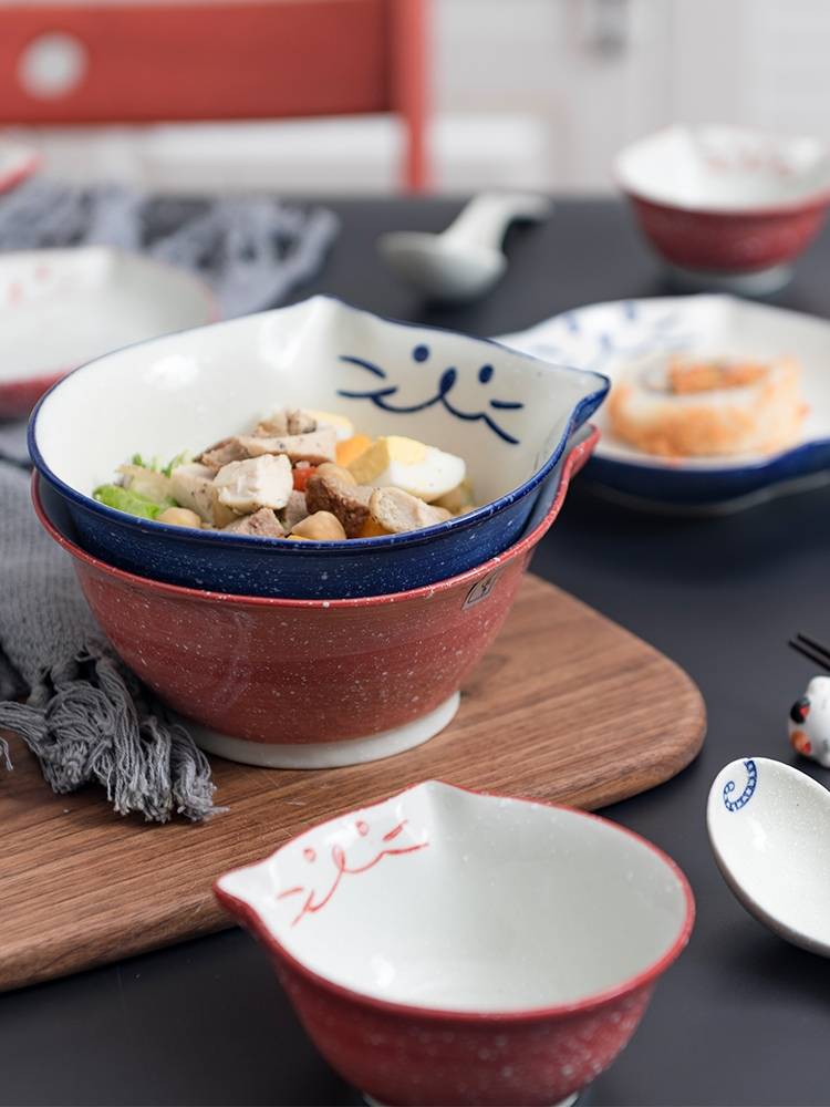 日本进口创意卡通陶瓷碗釉下彩可爱招财猫多用米饭深碗套装餐具