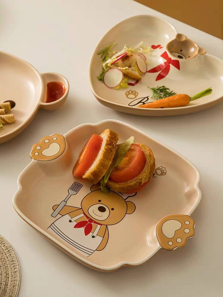 熊熊宝贝陶瓷餐具套装 碗盘 家用高颜值儿童餐具北欧创意网红餐具
