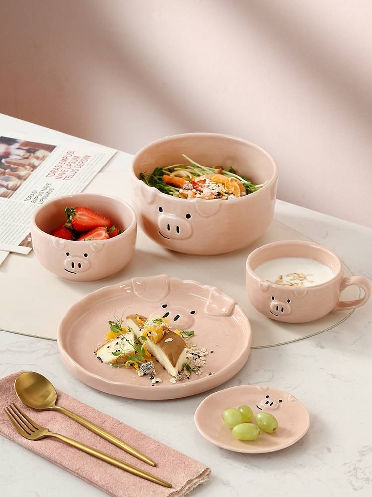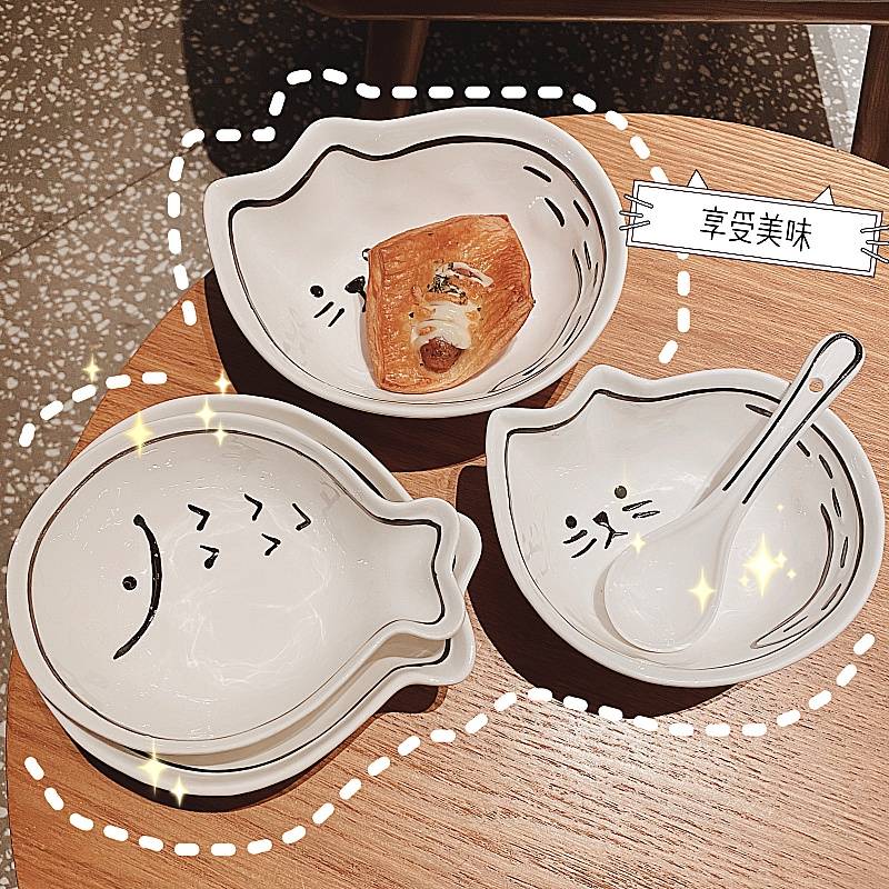 可爱碗碟套装陶瓷日式卡通餐具家用创意个性少女一人食早餐盘子碗