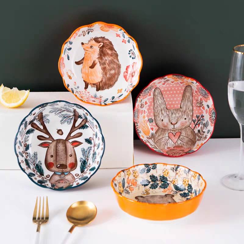 日式餐具可爱水果碗卡通动物饭碗家用陶瓷甜品碗创意麦片碗沙拉碗