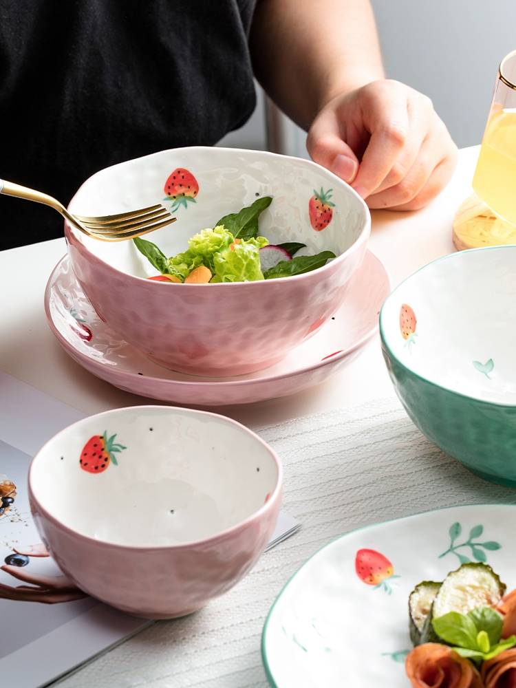 日式餐具碗盘家用碗可爱少女心创意个性陶瓷碗单个饭碗碗碟套装吃
