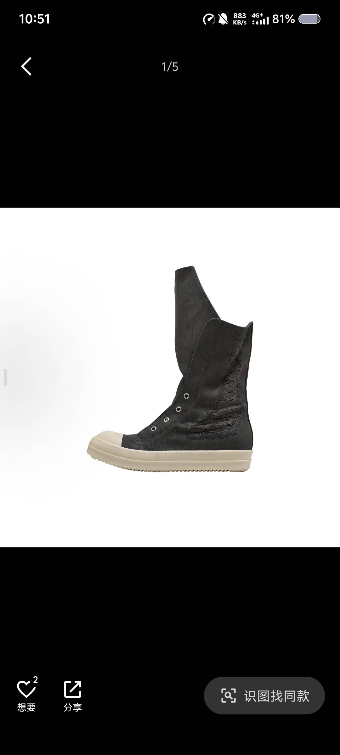 Rick Owens DRKSHDW Boot 圆头系带 高帮 帆布鞋 男款 黑色