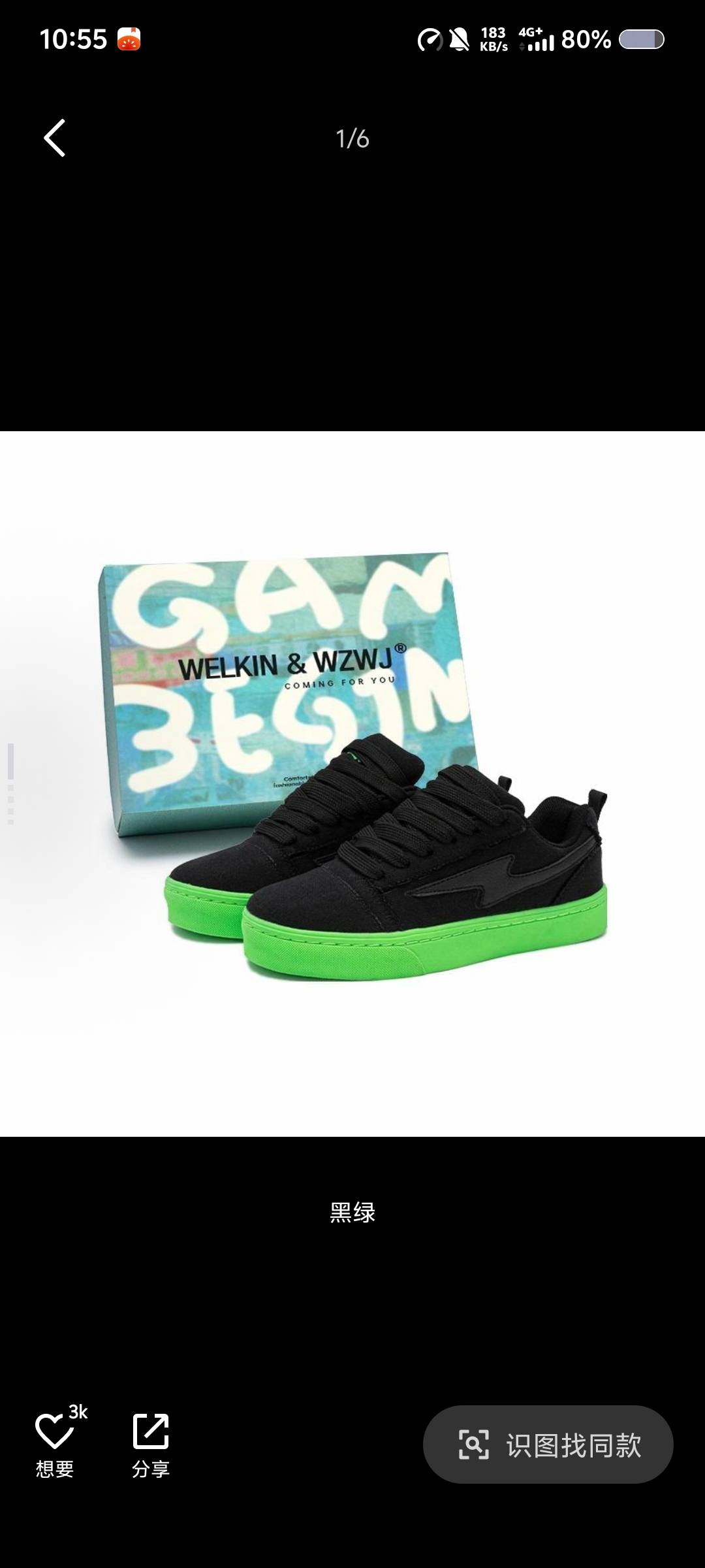 WELKIN&WZWJ 礼盒装 百搭休闲 小众时尚 潮流 防滑耐磨 低帮 板鞋 男女同款 黑绿