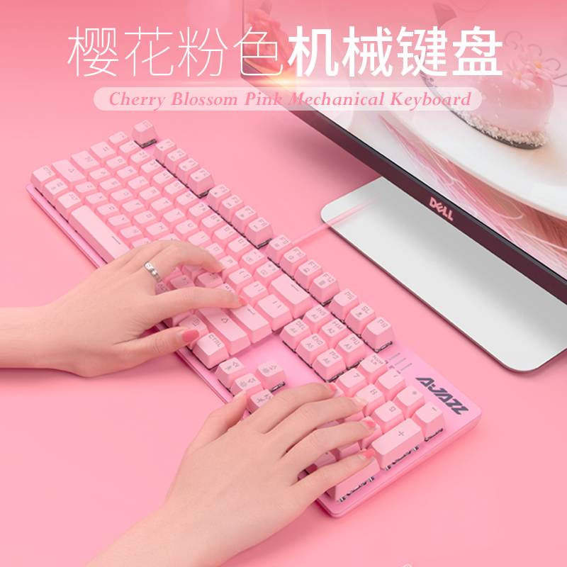 黑爵樱花粉机械键盘游戏电竞青轴黑轴电脑笔记本台式粉色少女生