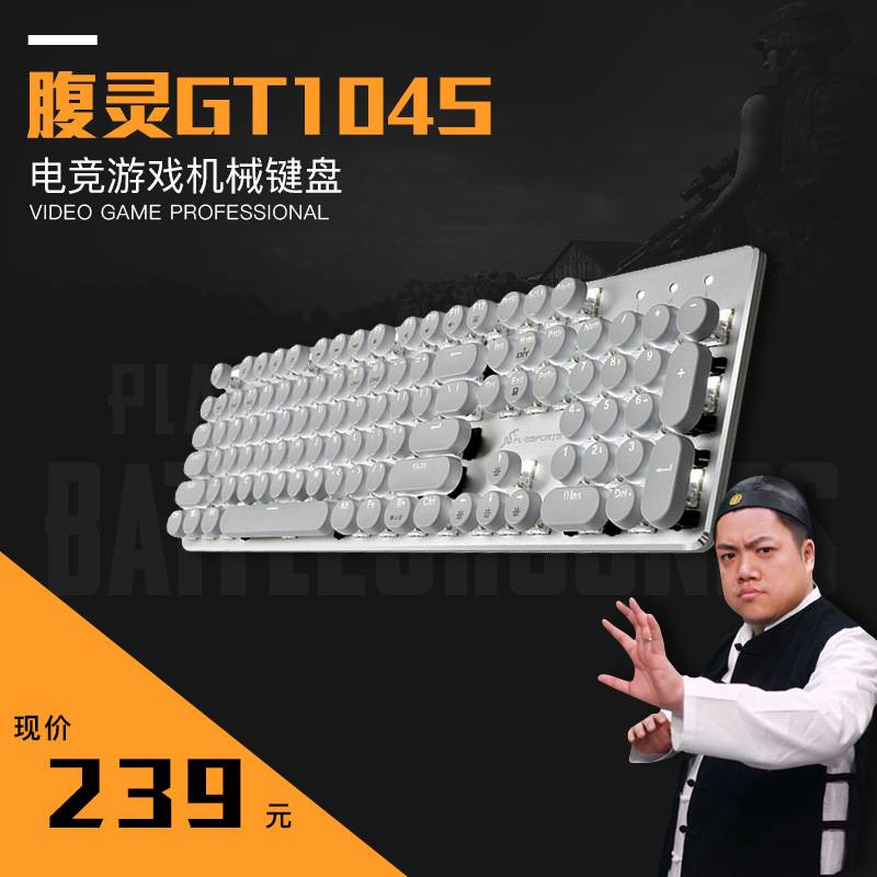 腹灵GT104S二代蒸汽复古朋克圆键帽机械键盘104键