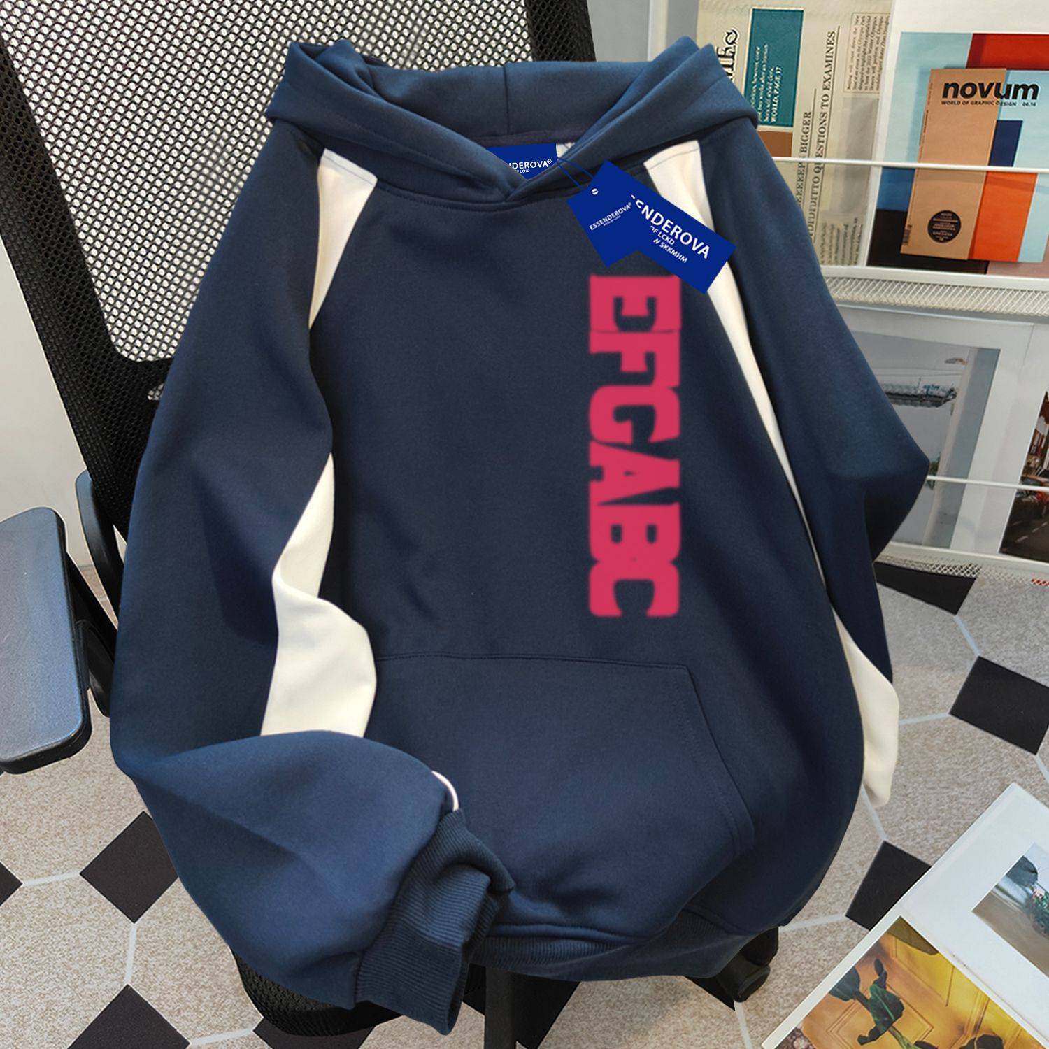100%纯棉个性潮流字母拼接连帽卫衣女秋冬季新款加绒宽松情侣上衣