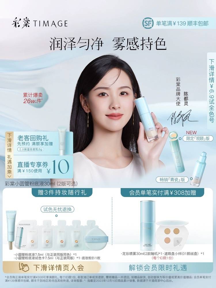 彩棠TIMAGE小圆管遮瑕持妆粉底液混油皮混干皮持久透气不脱妆暗沉