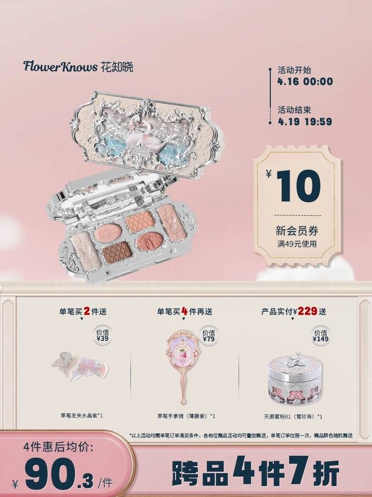 花知晓天鹅芭蕾系列六色眼影日常大地色哑光细闪珠光约会送女生 1件装