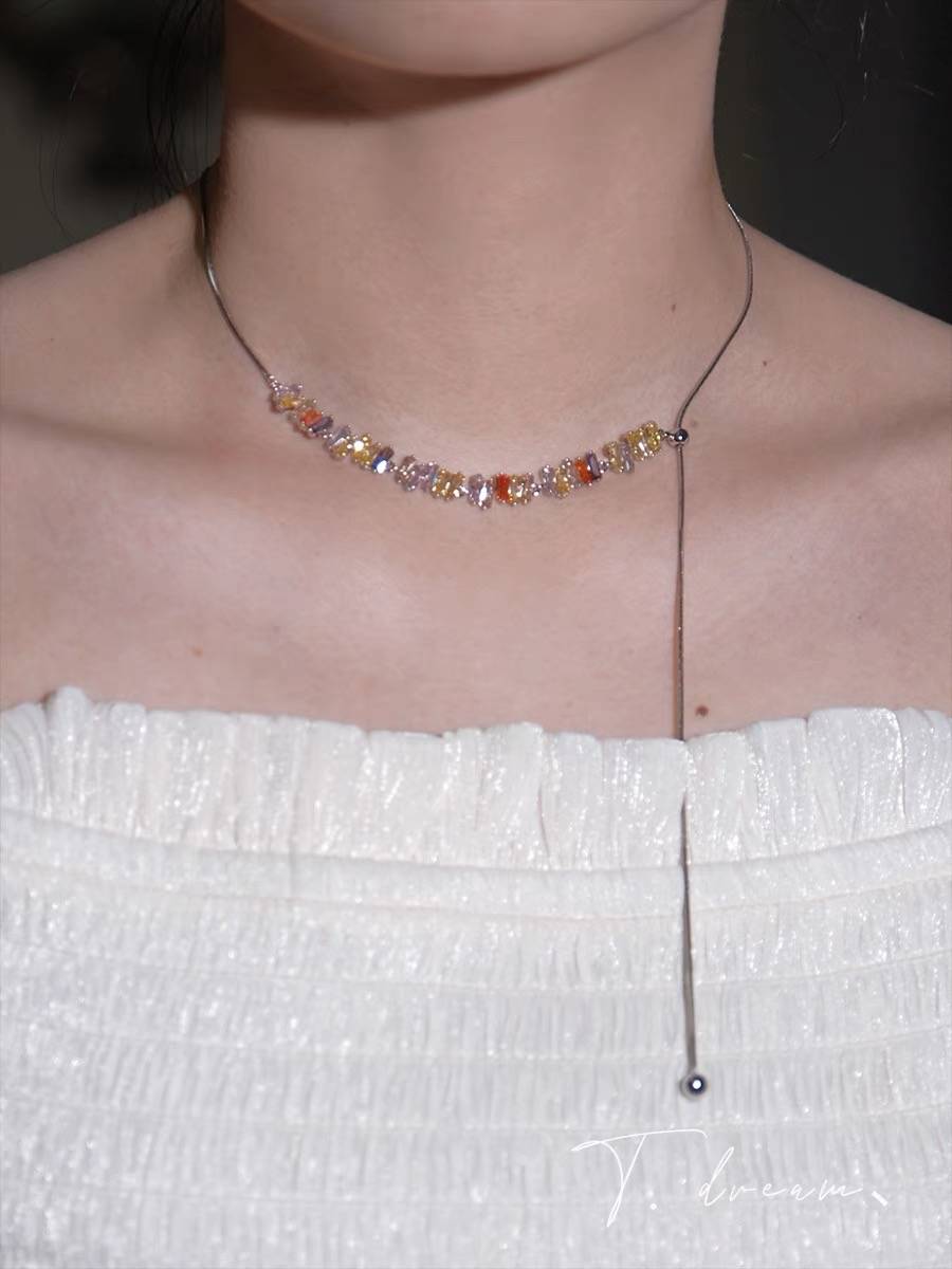 《彩虹》锆石项链女士小众设计锁骨可调节2023新款高级甜美