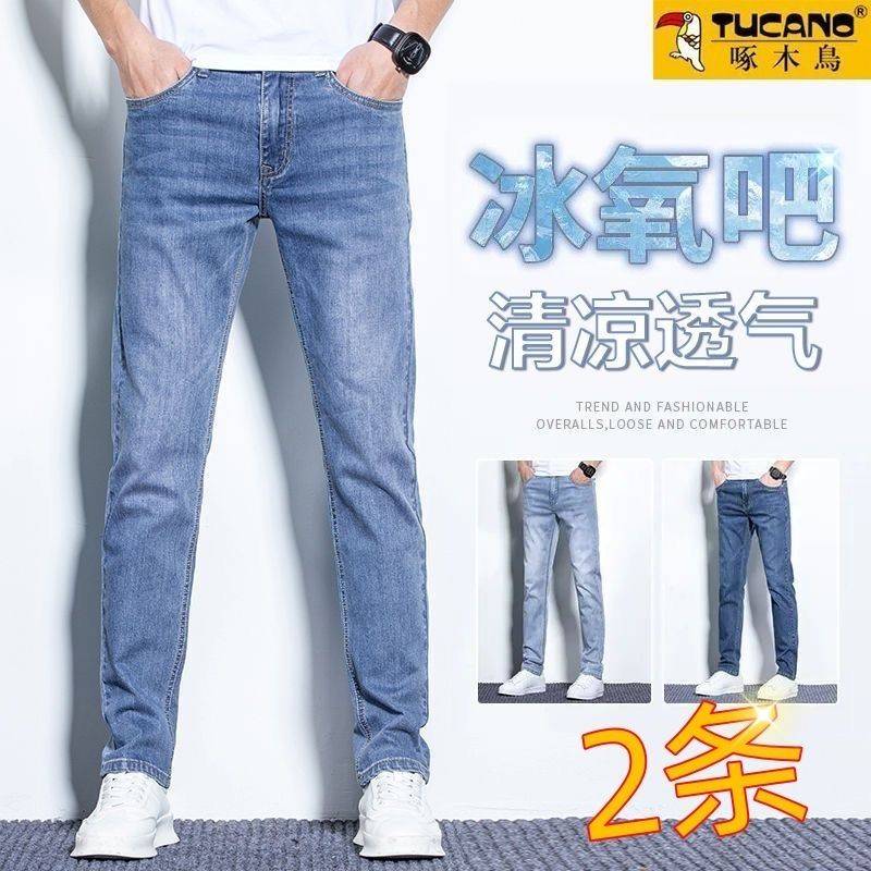 啄木鸟夏季超薄款牛仔裤男高端青年弹力修身直筒柔软休闲男士长裤