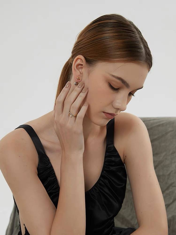 金银豆子两戴耳钉925纯银银针小众ins简约冷淡风气质