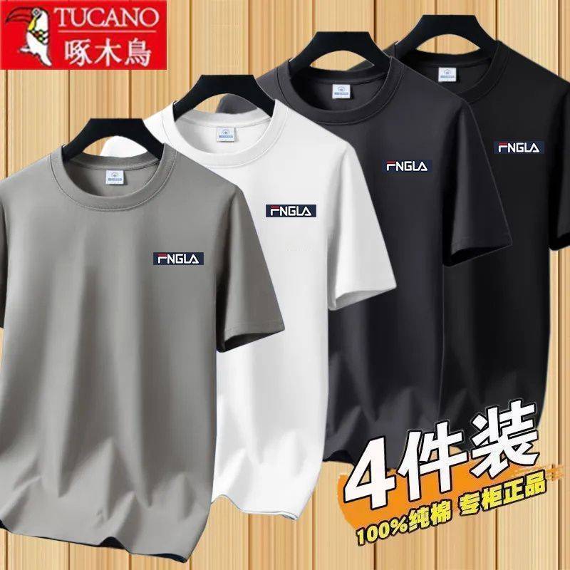 啄木鸟夏季100%纯棉短袖t恤男宽松大码韩版潮流休闲上衣体恤1/2件