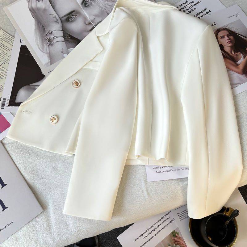 双排扣白色西装外套女修身2022年春季纯色小个子气质长袖短款西服