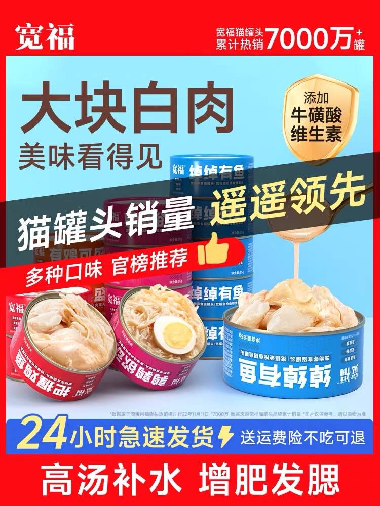 宽福猫罐头主食罐补充营养增肥发腮猫咪零食成幼猫湿粮条24罐整箱