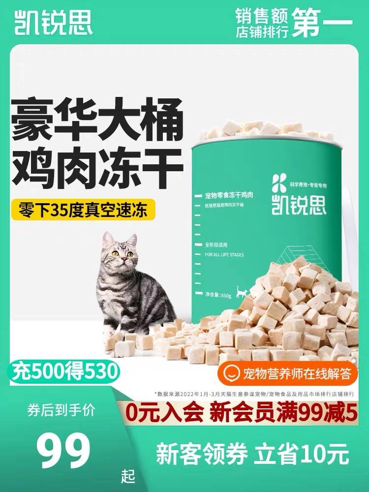 凯锐思 宠物猫咪零食冻干鸡肉块营养增肥发腮猫用鸡肉冻干桶550g
