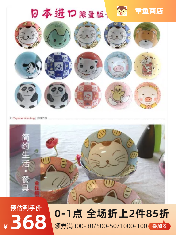 日本进口卡通陶瓷碗釉下彩餐具面碗饭碗可爱招财猫创意多用碗