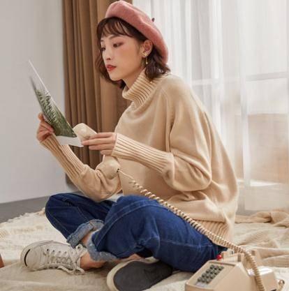 2018秋冬季新款高领毛衣女慵懒风网红宽松学生套头上衣针织衫