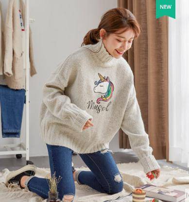 2018秋冬季新款毛衣女半高领甜美可爱套头粗毛线宽松外穿上衣