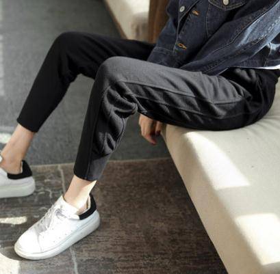 加厚加绒运动裤女秋宽松2018新款冬季哈伦休闲裤子女黑色束脚
