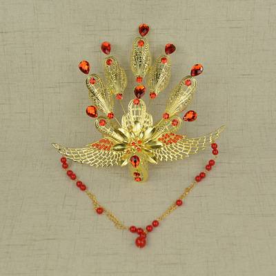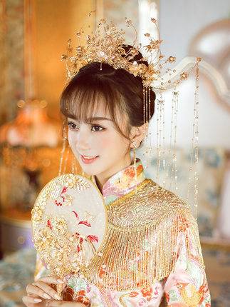 水舞金色花朵串珠流苏中式婚礼配饰头饰