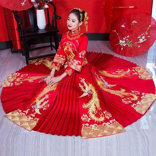 古风嫁衣凤冠霞帔上衣下裙百褶裙摆红色嫁衣