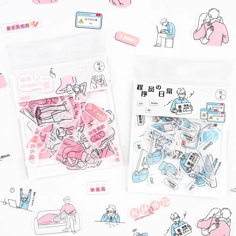 拾光简约盐系生活小人物和纸贴纸包手账卡通韩国贴画手账装饰
