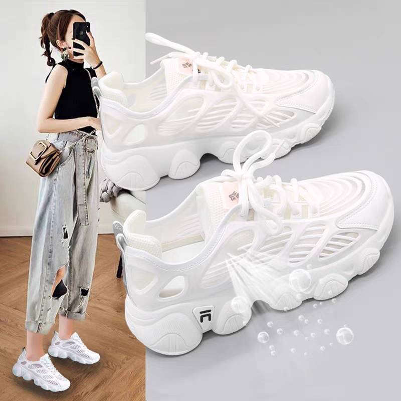 老爹鞋女2023新款夏季透气网面镂空小白鞋初中学生运动单网鞋薄款