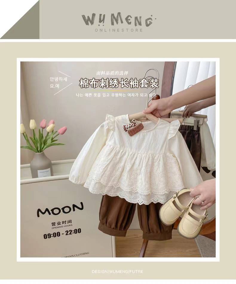 女童秋款套装2024新款洋气宝宝花边衬衫两件套儿童春秋季时髦衣服