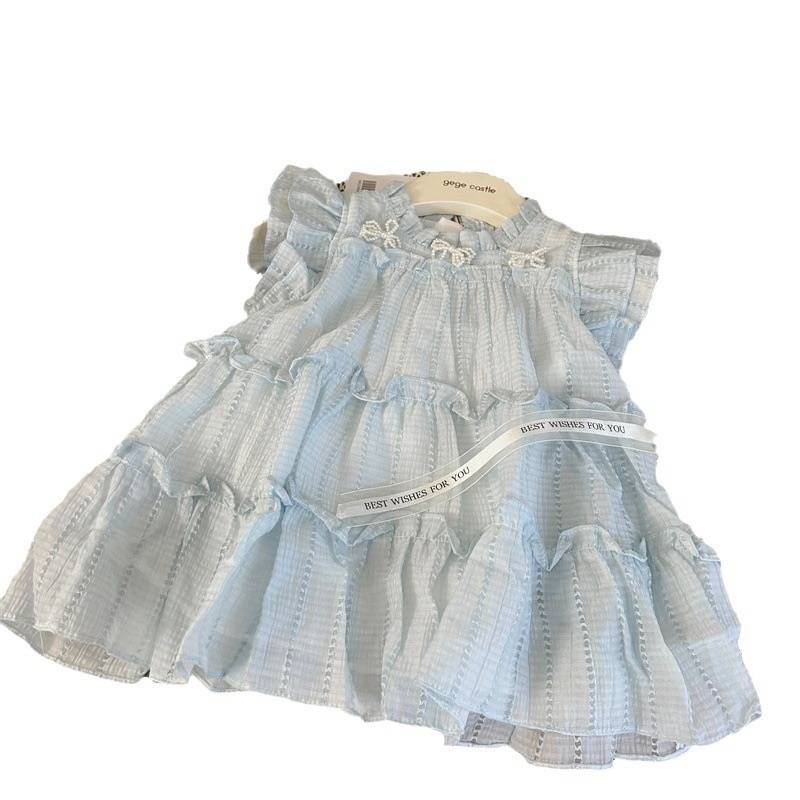 韩版童装2024新款夏季女童连衣裙女宝宝洋气蛋糕礼服裙气质公主裙