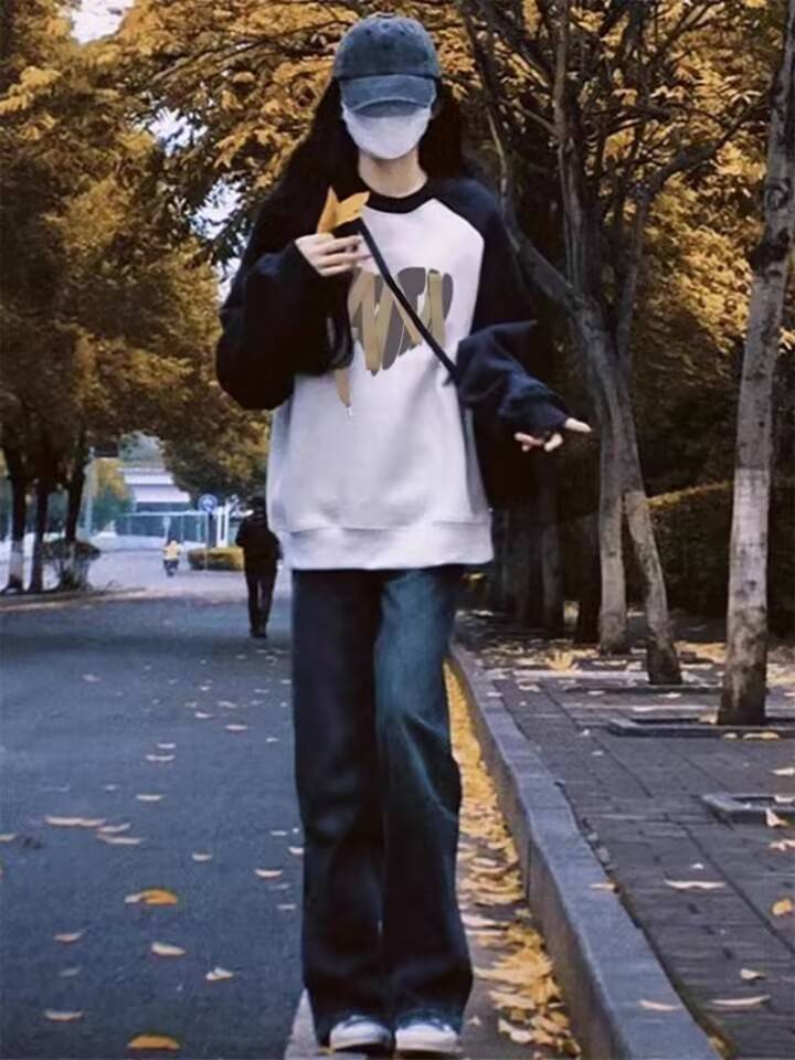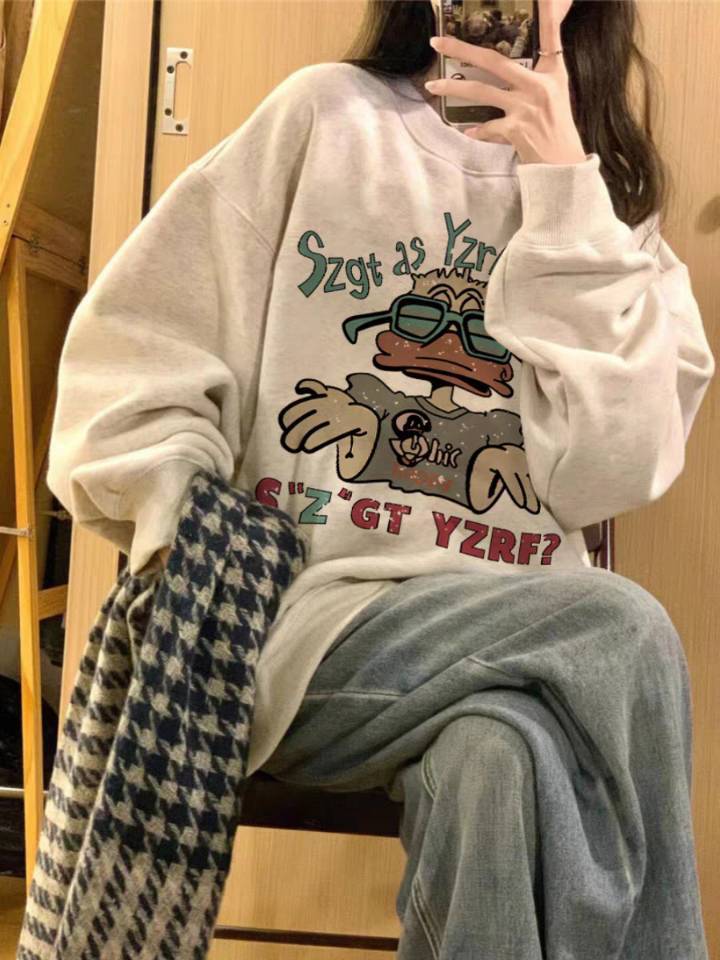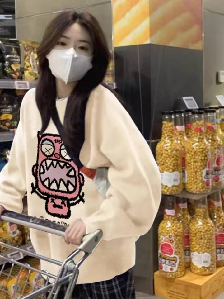卫衣女宽松连帽新款春秋韩版百搭套头短款卫衣白色上衣外套