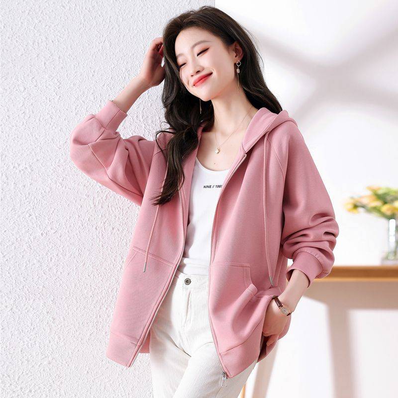 粉色连帽卫衣女春秋宽松显瘦开衫外套休闲学院运动风今年流行上衣