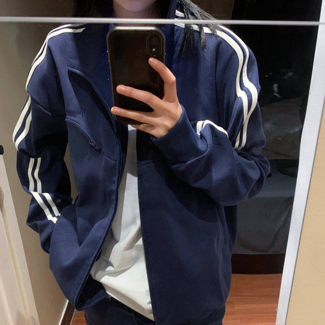 WUYUEYI 双杠分割拉链卫衣潮牌情侣款春秋美式宽松运动开衫外套女