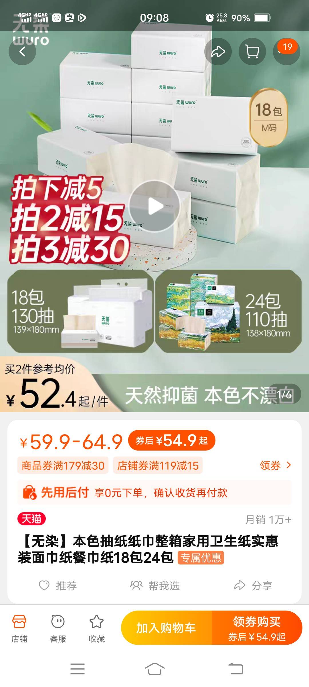 【无染】本色抽纸纸巾整箱家用卫生纸实惠装面巾纸餐巾纸18包24包