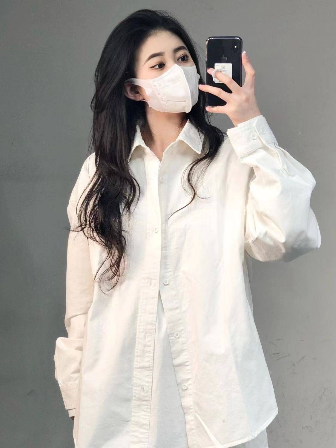 设计感小众基础白色纯棉衬衫女长袖内搭宽松上衣春秋款