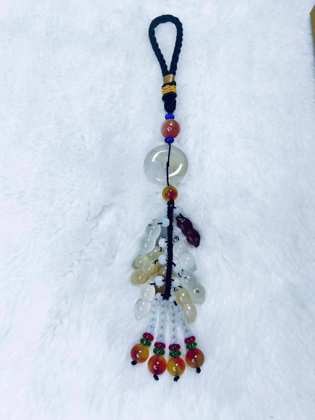 天然玛瑙,平安扣,发生坠,翡翠玉珠,避邪,保平安!高档车挂