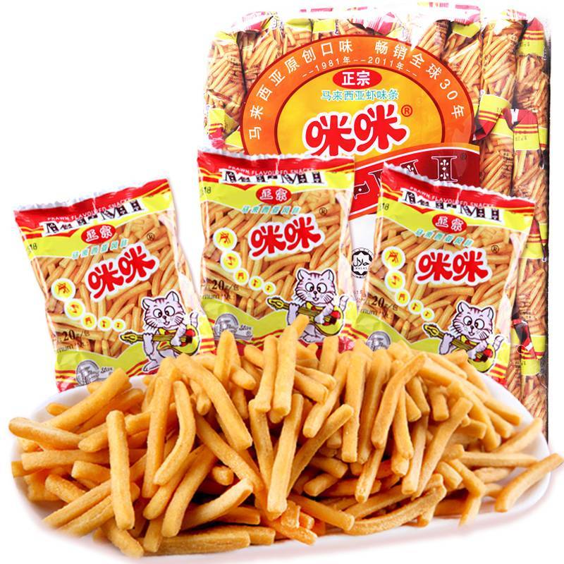 正宗咪咪虾条20g40包办公室膨化食品休闲小吃