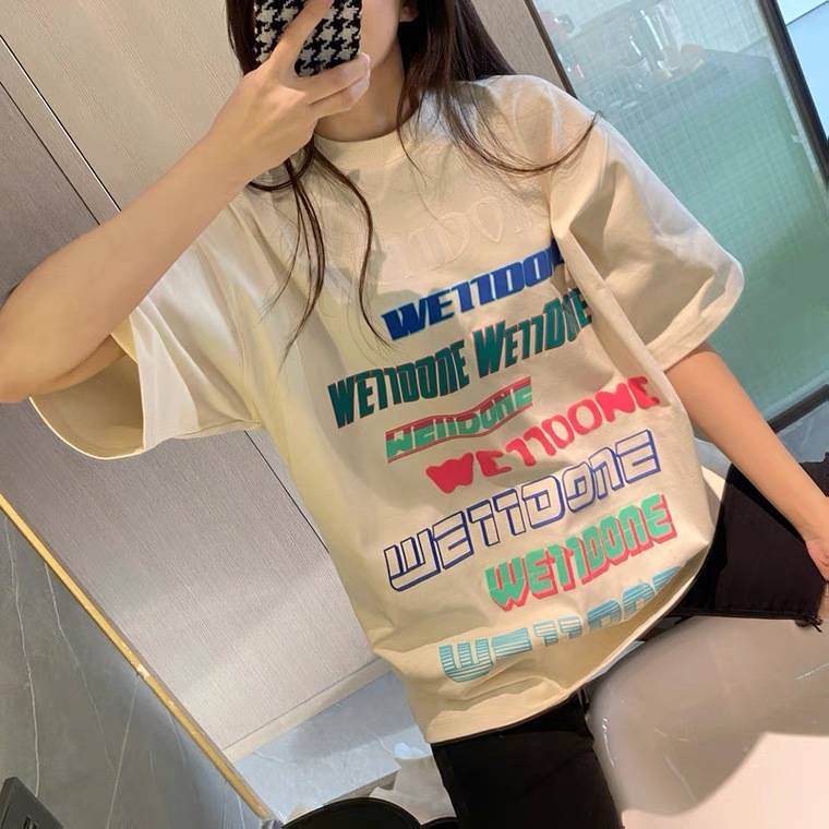 WE11DONE霓虹弹幕潮牌T恤字母圆领男女ins宽松高街小众短袖夏新款