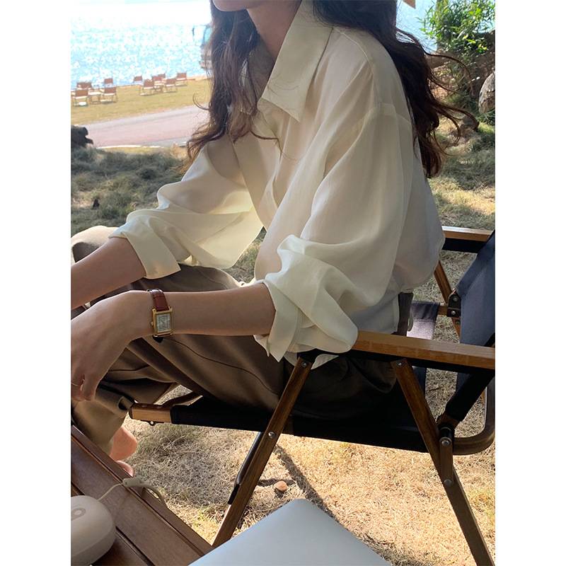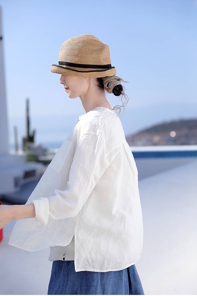 夏款清白色高品质35英支亚麻密织造宽松清透白衬衫4456