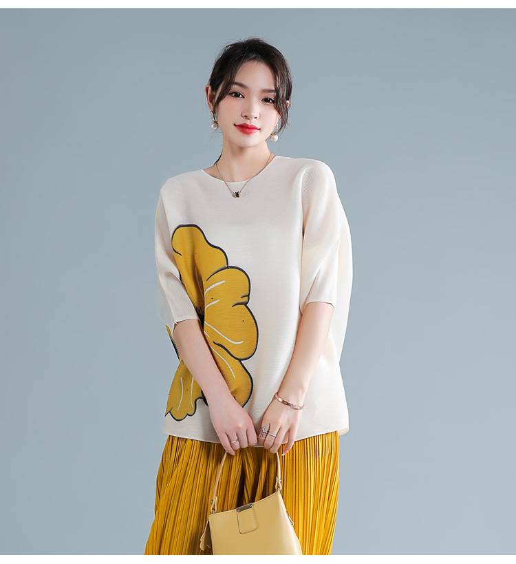三宅褶皱上衣女时尚蝙蝠袖印花T恤宽松显瘦遮肚子女装洋气夏秋新