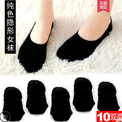 船袜女袜子女浅口韩国可爱秋季薄款纯棉硅胶防滑黑色低帮隐形短袜