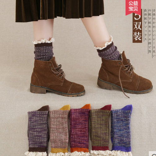 袜子女秋冬纯棉堆堆袜韩版学院风可爱中筒袜日系花边袜森系女长袜