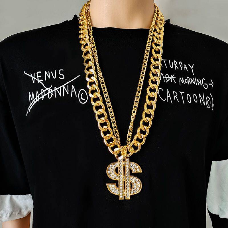 嘻哈夸张大链子男粗假金超大道具社会人塑料土豪仿真网红直播项链