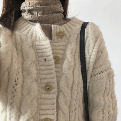 小众设计感针织麻花毛衣外套2020加厚打底套头高领外穿女冬