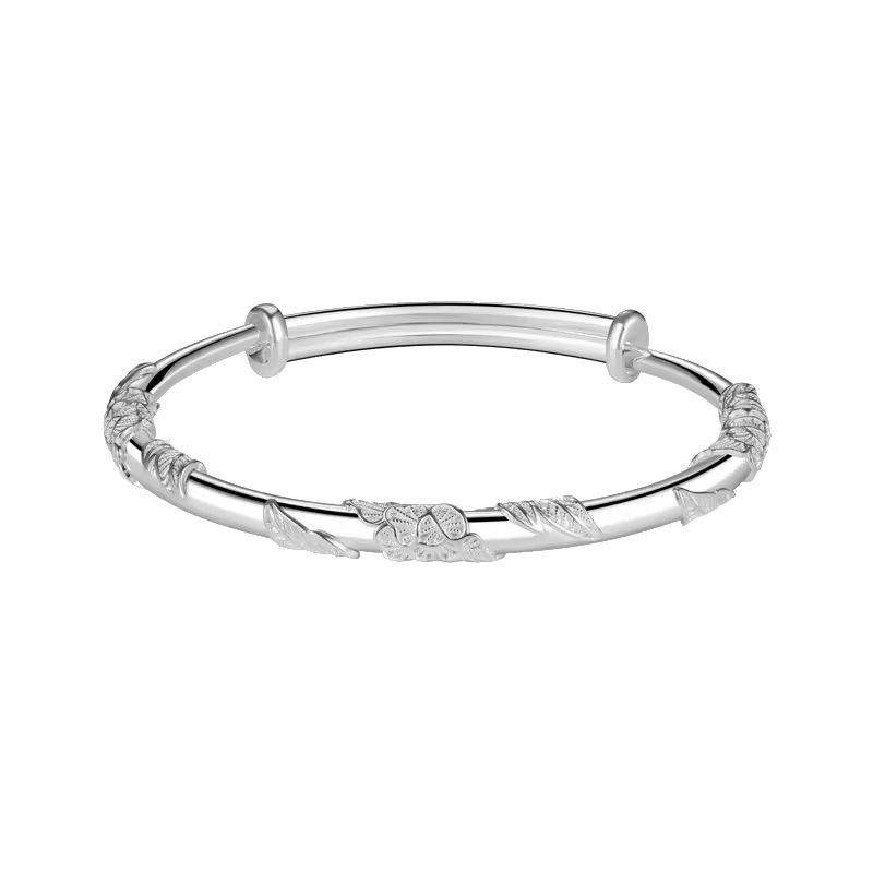 中国黄金999足银女手镯繁花似锦实心推拉节日礼物送女友送妈妈