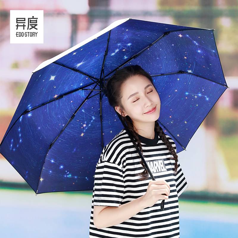 异度 星空超轻小遮阳伞女防晒防紫外线五折迷你晴雨伞两用太阳伞