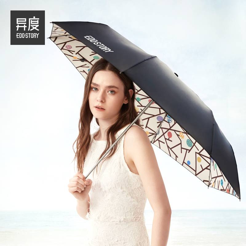 异度 雨伞遮阳伞防紫外线创意太阳伞五折晴雨两用折叠防晒小黑伞