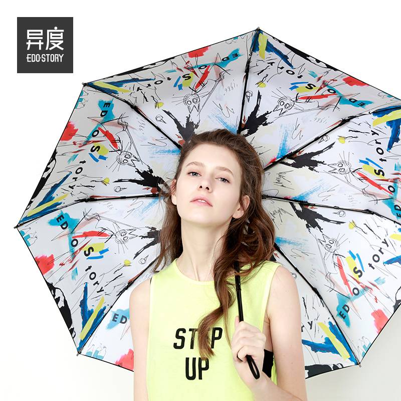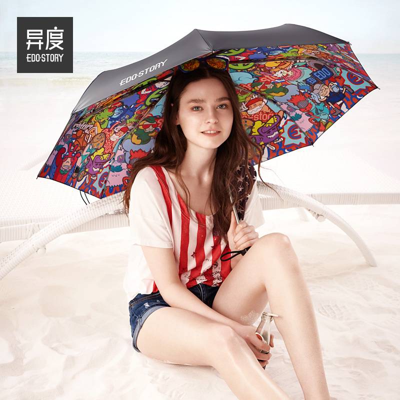 异度 涂鸦伞遮阳伞创意个性折叠潮伞防紫外线太阳伞晴雨伞小黑伞